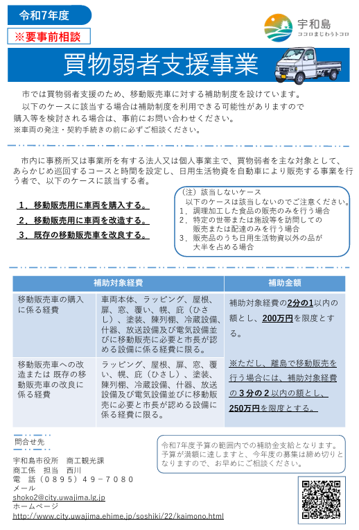 宇和島商工会議所 > 各種補助金・助成金 > 市の補助金・助成金 > 宇和島市買物弱者支援事業費補助金制度について