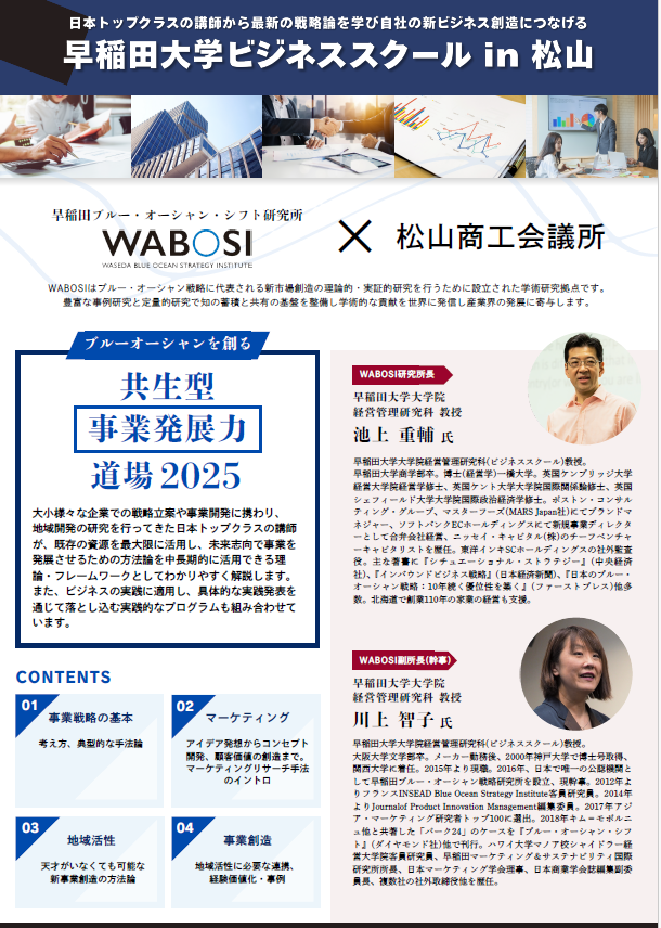 ブルー・オーシャン戦略(競争相手のいない新たな市場を作り出し、他社と競合することなく事業を展開する戦略)を研究するプロの皆様に事業戦略の基本的な考え方や、その手法をわかりやすく解説していただきます。