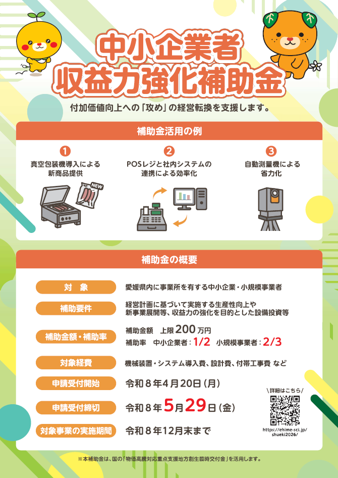 中小企業者収益力強化補助金および個別相談会のご案内2026年04月08日